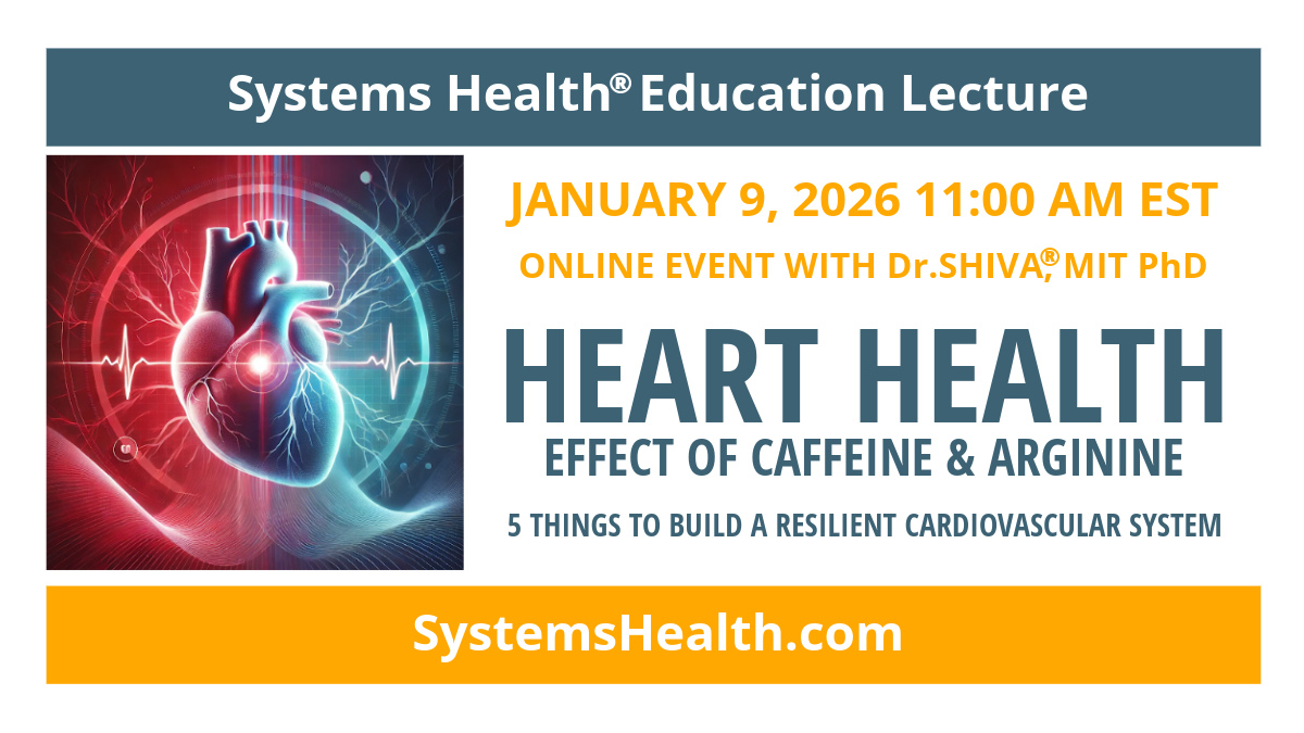 Dr.SHIVA’s Systems Health® Education Lecture: Heart Health Effect of Caffeine & Arginine – Jan 9, 2026 at 11 AM EST